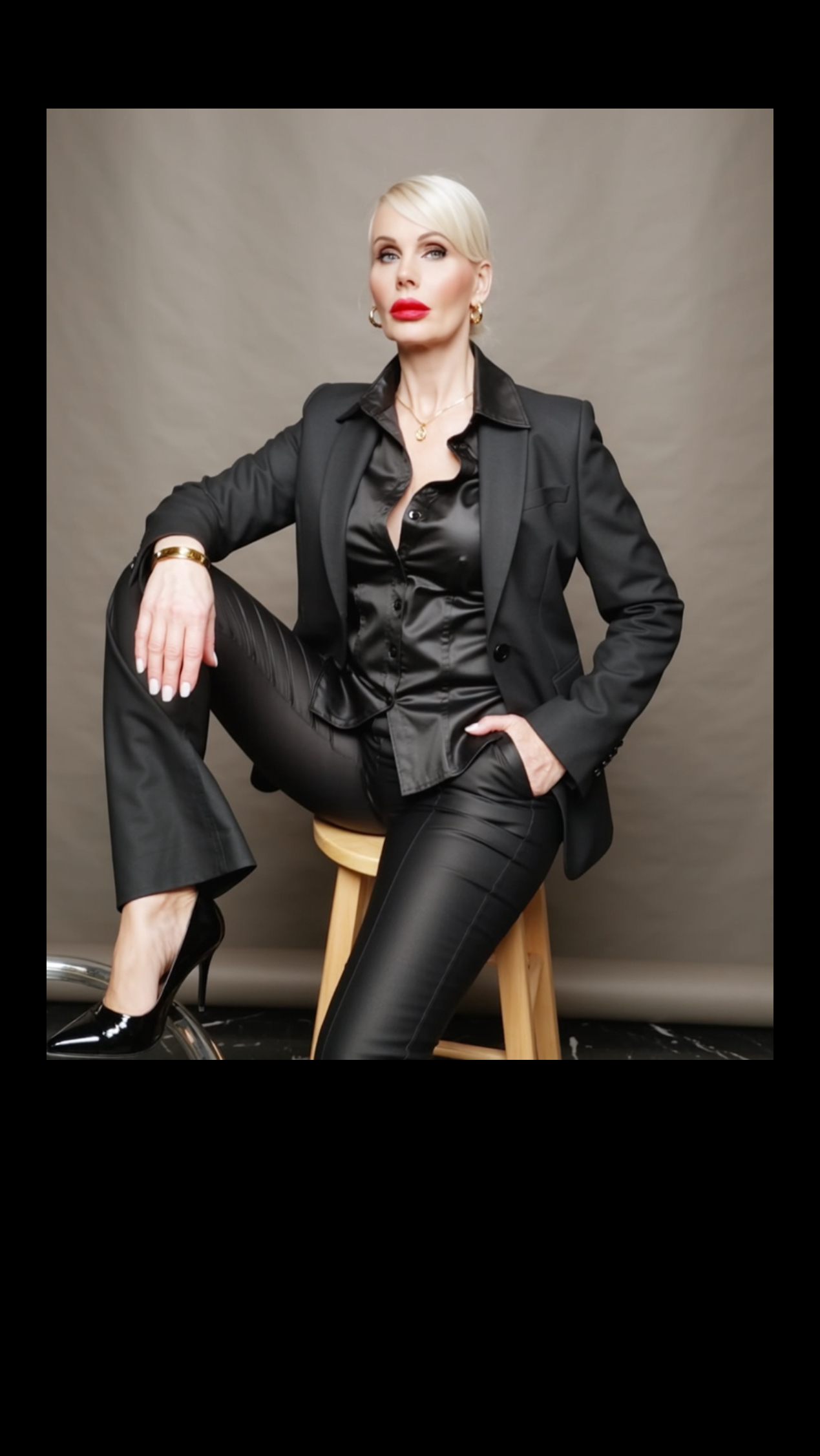Fetisch Materialien : echtes Leder , Lederstiefel , Latex , Nylons , Seide und Satin , High Heels , Gothic Style, Bosslady
